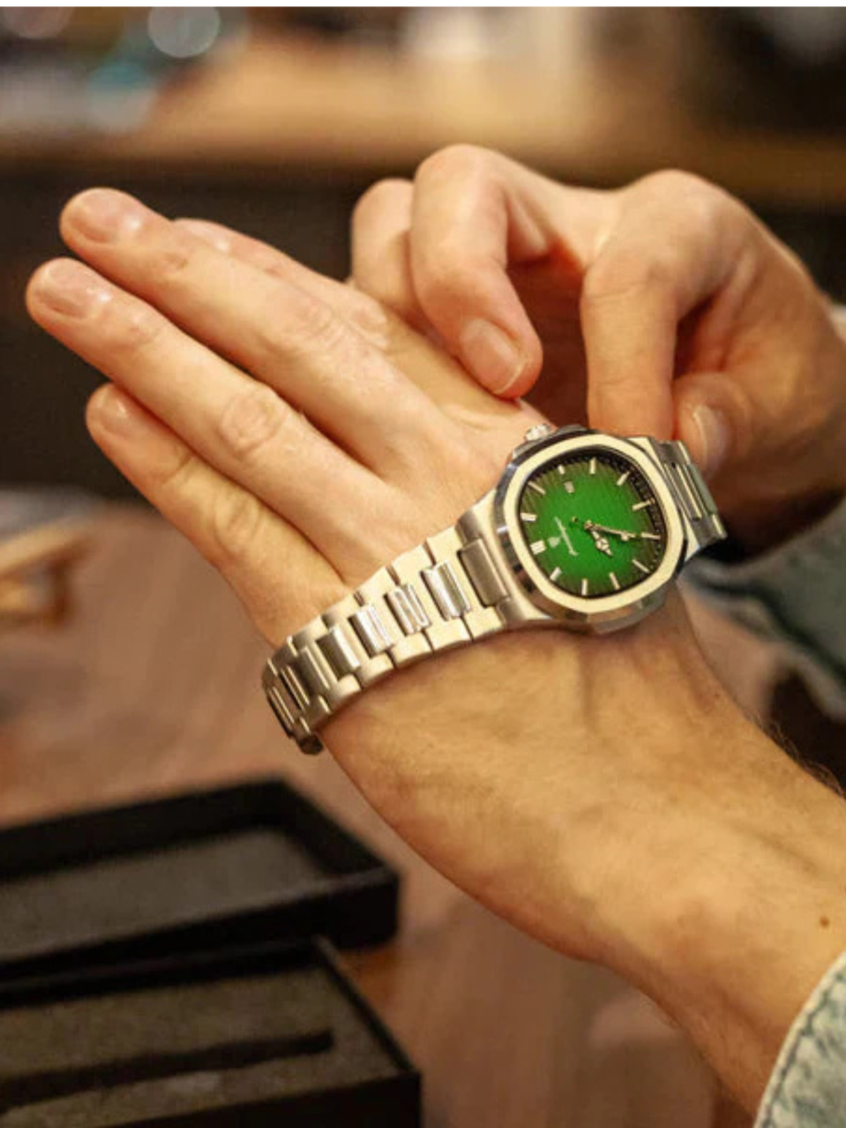 Nos montres sont fabriquées en acier inoxydable de haute qualité, avec un verre saphir résistant aux rayures pour protéger le cadran. Les bracelets sont robustes et conçus pour durer.